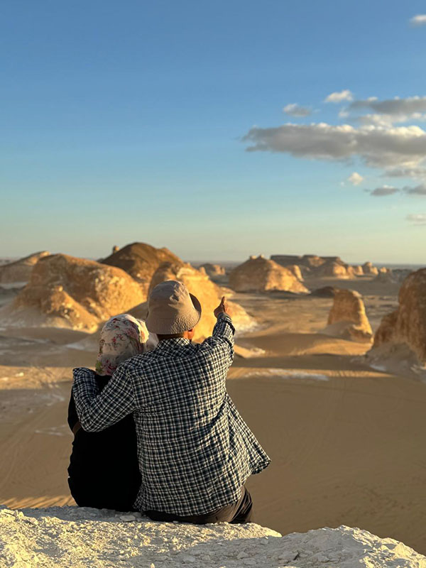 Start 7:00 Am from Cairo Bahariya , have lunch then visit the Black Desert Go to the Bedouin village and see the hot and cold water springs, Crystal Mountain , agabat area And sand skating by board And visit the open cave and adventure , and small valley ,Then, visit the Roman water spring there after start to go to visit the White Desert (old and new ) and some of the different forms , camping there.